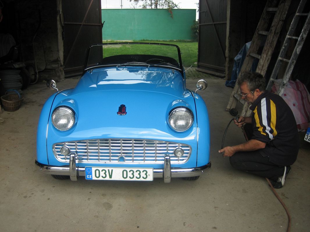 9/23/11 Irenka husband Jirka Grunfeld's toy, a completely restored 1956 Triumph IMG 4469